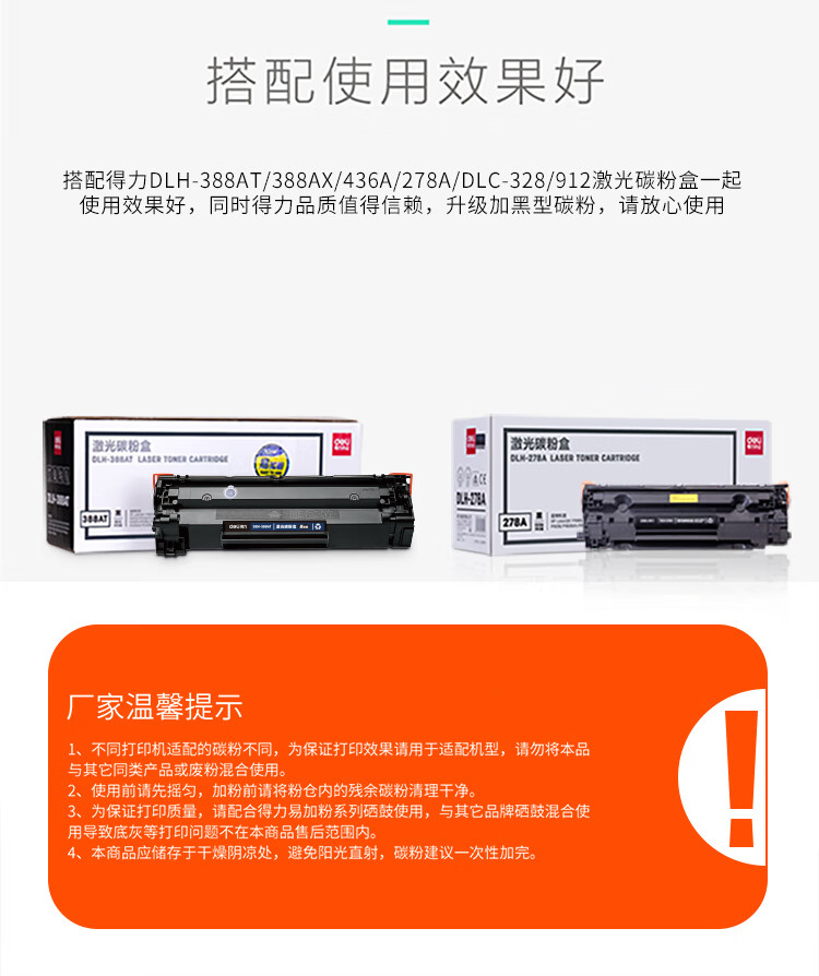 • 得力deli DLH-F388A 388AT硒鼓搭配碳粉/墨粉适用惠普 P1007/P1008/P1106/P1108/M1136/M1213nf/M1216nfh